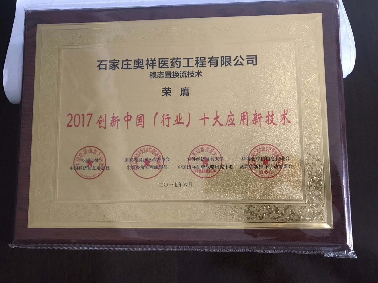 熱烈祝賀我公司的“穩(wěn)態(tài)置換流技術(shù)”榮獲“2017創(chuàng)新中國(guó)(行業(yè))十大應(yīng)用新技術(shù)”稱號(hào)
